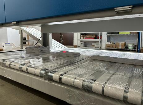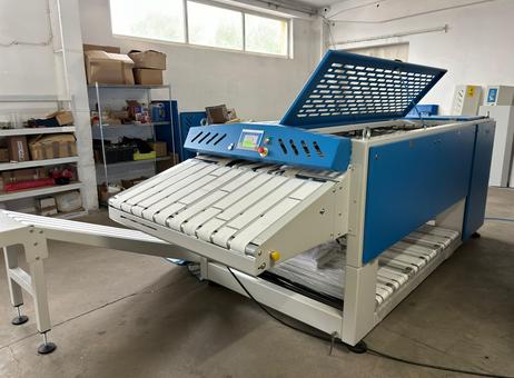 This machine can fold single lines to create a French stack combined with 1, 2 or French cross stacks and automatic sorting of up to three stackers below the machine.